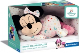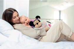 Mäkučká plyšová Minnie od CLEMENTONI BABY pomáha deti upokojiť a uľahčiť zaspávanie vďaka kombinácii chromoterapie a jemných melódií. Ponúka biele šumy, klasickú hudbu, ukľudňujúce melódie aj tlkot srdca a zároveň svieti farebnými svetlami s meniacou sa intenzitou. Roztomilý dizajn s pyžamkom s nočným motívom z nej robí neodolateľného maznáčika na spanie.