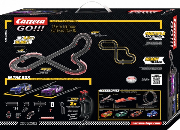 Zažite napätie pretekov NASCAR doma s autodráhou Carrera GO s dĺžkou 4,9 m. Set obsahuje dve detailné autá Chevrolet Camaro Next Gen, dynamické prvky ako zvislá stena, križovatka a počítadlo kôl. Vďaka turbo ovládačom, magnetom a dvojitým kefkám je jazda rýchla, plynulá a skvele priľnavá – ideálna zábava pre deti od 6 rokov aj dospelých.