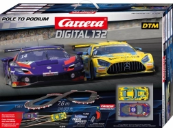 Užite si adrenalín DTM pretekov priamo v obývačke. Digitálna autodráha Carrera DIGITAL 132 „Pole to Podium“ kombinuje rýchle rovinky, technické zákruty a špeciálne predbiehacie diely pre autentické závodné momenty. Autá v mierke 1:32 potešia detailným spracovaním a výbornými jazdnými vlastnosťami vďaka dvojitým kefkám a magnetu.