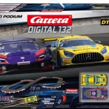 Závodný set Carrera DIGITAL 132 „Pole to Podium“ prináša 7,6 m dlhú trať, detailné vozidlá FERRARI 296 GT3 a MERCEDES-AMG GT3 Evo, bezdrôtové ovládače WIRELESS 2.0 a možnosť predbiehania vrátane digitálnych funkcií ako tankovanie, simulácia závodu a jazda proti ghost car. Skvelá zábava pre až 6 jazdcov od 8 rokov.