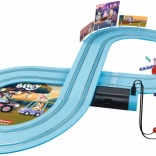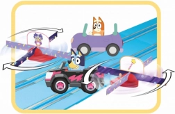 Zoznámte svoje deti so svetom pretekania vďaka autodráhe Carrera First s licenciou BLUEY. Trať v mierke 1:50 sa ľahko skladá vďaka systému spon a vďaka stabilným podperám drží pevne na mieste. Dve farebné autíčka Bluey a Bingo s magnetom a kontaktnými kefkami výborne držia stopu a zvládnu aj zábavné vrtule na trati.