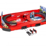 Skladanie, prenášanie aj ukladanie je hračka. Odolný kufrík ochráni trať aj príslušenstvo a vďaka madlu vezmete závody kamkoľvek.