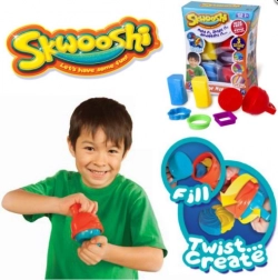 Sada Skwooshi s mixérom podporuje detskú fantáziu a jemnú motoriku. Vďaka jedinečnej štruktúre sa hmota ľahko tvaruje a vyžaduje iba minimálnu silu, čo je skvelé aj pre mladšie deti. Mixér umožňuje kombinovať farby a experimentovať s odtieňmi bez neporiadku – hmota sa nedrolí a nelepí.