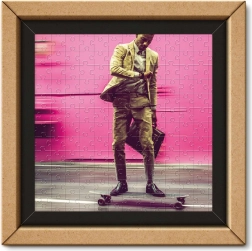Puzzle CLEMENTONI Frame Me Up – Žiť rýchlejšie prináša moderný spôsob, ako si užiť skladanie a zároveň rýchlo ozdobiť stenu hotovým obrazom. Dieliky presne lícujú, obraz po zložení jednoducho vložíte do pevného kartónového rámu a behom chvíľky máte dizajnovú dekoráciu bez nutnosti akéhokoľvek lepenia.