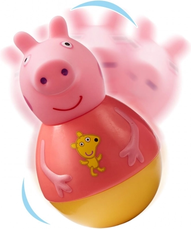 Rozšírte detské dobrodružstvo s PEPPA PIG vďaka farebnému Weebles domčeku, kde sa postavičky roztomilo kývu, ale nespadnú. Otáčaním kľuky deti posúvajú Peppu po rampe, spúšťajú ju po šmýkačke a pristávajú v blatovej kaluži – to všetko s dôrazom na bezpečnosť a jednoduché ovládanie malými ručičkami.