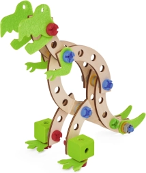 Stavebnica Eichhorn Constructor dinosaury je skvelou voľbou pre malých konštruktérov od 4 rokov. Vďaka 100 starostlivo spracovaným dielom z bukového dreva a odolného filcu si deti postavia troch ikonických dinosaurov a pritom rozvíjajú trpezlivosť, logické uvažovanie a zručnosť. Súčasťou balenia sú detské nástroje a podrobný návod, ktoré uľahčia montáž a prinesú veľa zábavy bez zbytočnej frustrácie.