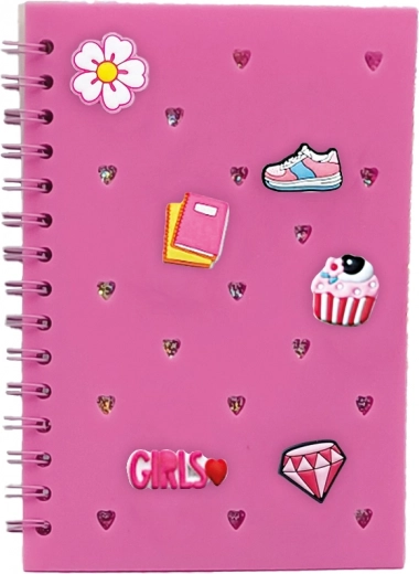 Zápisník TOYS INN v ružovej farbe ponúka skvelú kombináciu hravého dizajnu a praktického prevedenia. Silikónový obal je odolný a príjemný na dotyk, zatiaľ čo šesť vyberateľných odznakov umožňuje ľubovoľne meniť vzhľad a vyjadriť vlastný štýl. Vďaka špirálovej väzbe sa strany ľahko otáčajú a blok možno úplne otvoriť pre pohodlné písanie aj kreslenie.