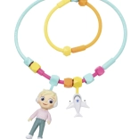 Z bábik ľahko spravíš náramok, náhrdelník či prívesok na kľúče a batoh. Farebné šnúrky, krúžok a konektory premenia hru na módny doplnok.