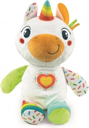 Roztomilý interaktívny jednorožec od BABY CLEMENTONI je mäkkučká hračka pre deti od 6 mesiacov, ktorá kombinuje svetelné efekty, melódie a zvuky na rozvoj zmyslov a jemnej motoriky. Vďaka rôznorodým textúram, šuštiacim častiam a ľahkému uchopeniu podporuje samostatnú hru. Praktická je aj možnosť prania v práčke a batérie v balení.