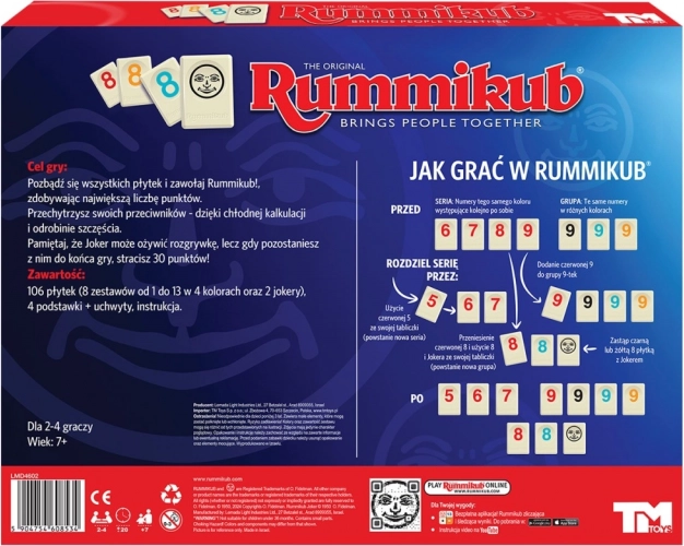Obsah balenia: 106 kameňov (8 sád čísel od 1 do 13 v štyroch farbách a 2 žolíky), 4 stojany a podrobné pravidlá. Pripravte sa na napínavé duely, kde rozhoduje múdra taktika aj správne načasovanie.