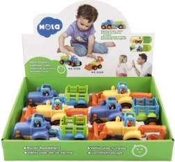 Traktor s prívesom/Buldozér plast 16 cm pre najmenších na zotrvačník 6 ks v boxe 18m+