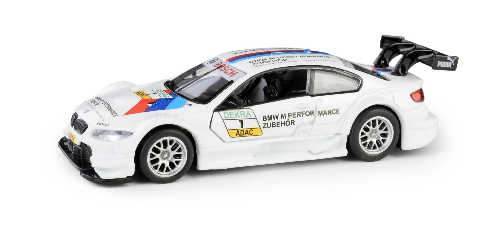 Autentické proporcie, pretekárske polepy a aerodynamické prvky prinášajú verný vzhľad vozidla BMW M3 DTM – ideálne na hranie aj do zberateľskej vitríny.