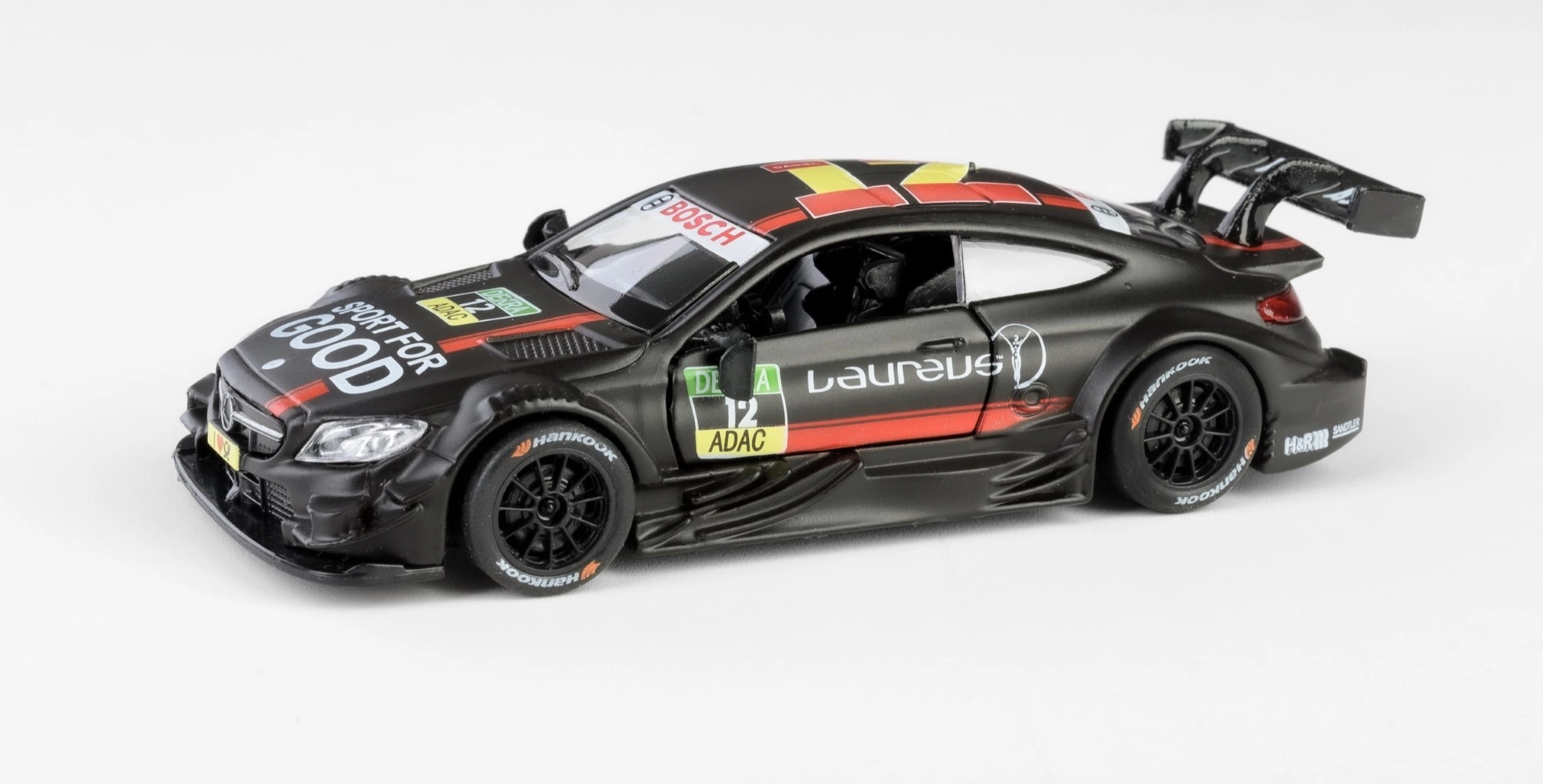 Precízne spracovaný model vozidla MERCEDES-AMG C 63 DTM v mierke 1:43 poteší zberateľov aj malých nadšencov. Ponúka detailné prevedenie, otváracie bočné dvere, pull-back pohon pre jazdu vpred a gumené pneumatiky pre realistickejší vzhľad. Odolná kombinácia kovu a plastu zaručuje dlhú životnosť a bezpečnosť potvrdzuje certifikácia CE.