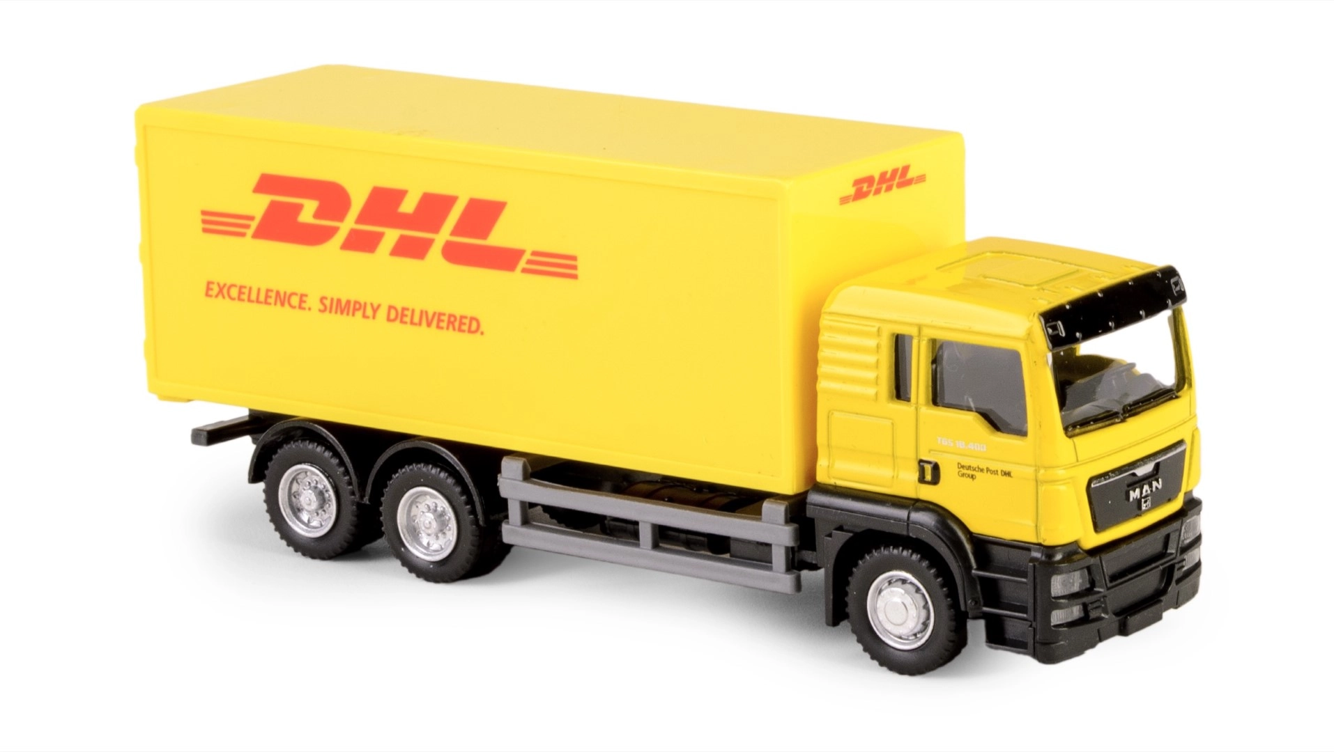 Autentické farby, logá a proporcie vozidla DHL vďaka oficiálnej licencii. Precízne spracovaná kabína, šasi aj nákladový box potešia malých vodičov aj zberateľov.