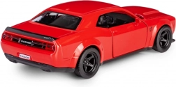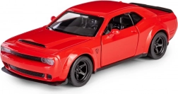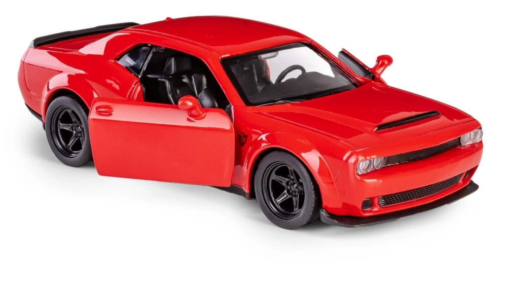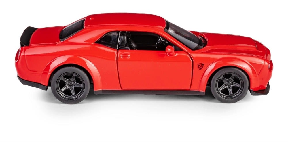 Užite si realistickú jazdu s detailným modelom auta Dodge Challenger SRT Demon v mierke 1:32. Kombinácia kovových a plastových dielov zaisťuje odolnosť, otváracie dvere odhalia starostlivo spracovaný interiér a mechanizmus pull-back prináša zábavu pri jazde vpred. Gumové pneumatiky zlepšujú priľnavosť a oficiálna licencia garantuje verné detaily ikonického muscle car.