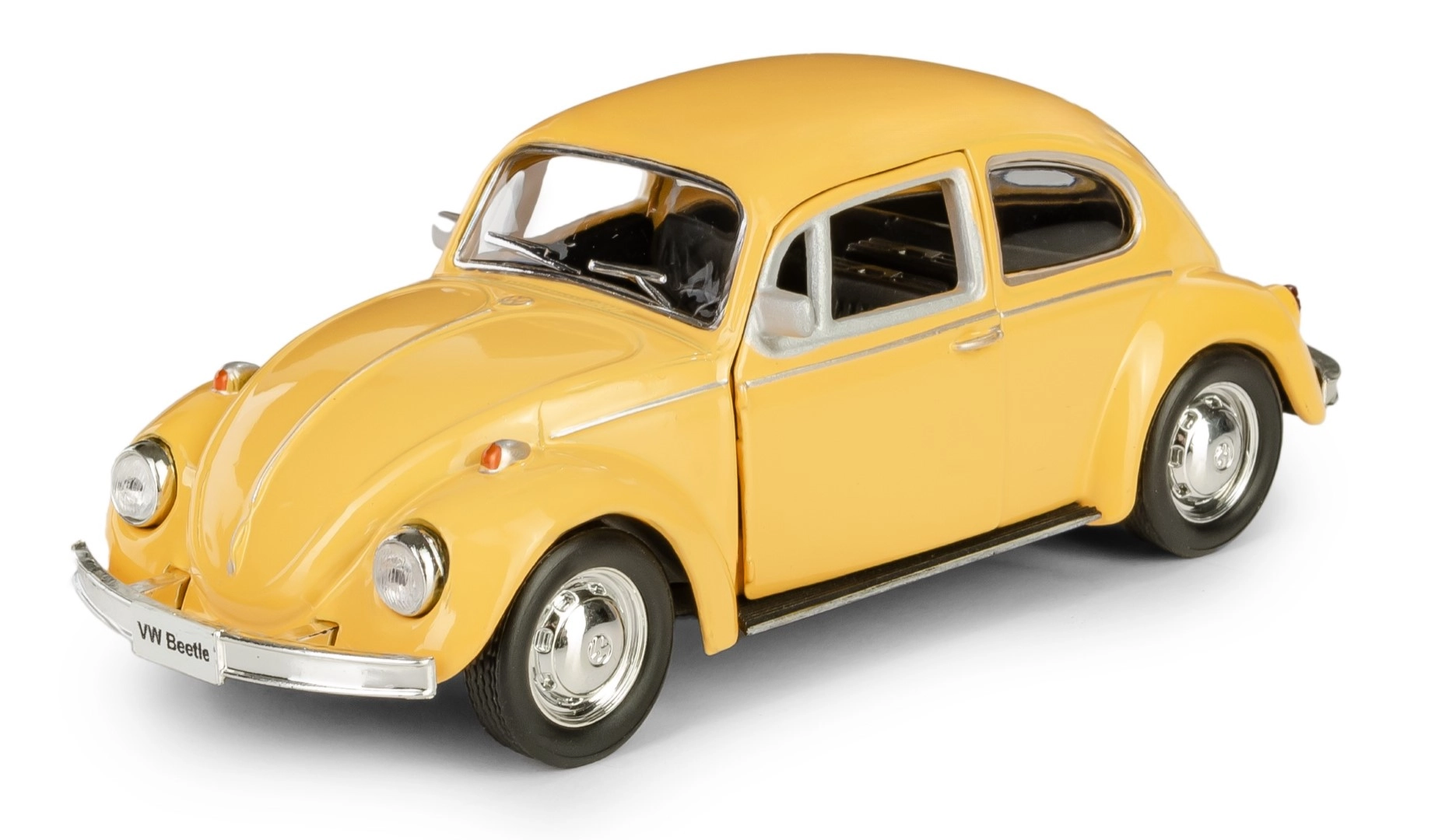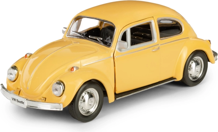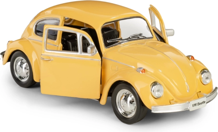 Užite si detailne spracovanú repliku vozidla VOLKSWAGEN BEETLE 1967 v mierke 1:32. Tento kovový model s plastovými detailmi ponúka otváracie dvere, pull-back pohon pre zábavnú jazdu, gumené pneumatiky a odolný netoxický lak v žiarivo žltej farbe. Vhodné pre deti od 3 rokov aj pre zberateľov.