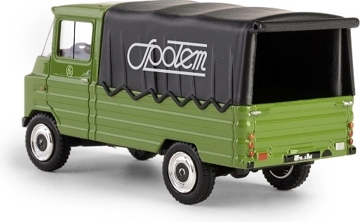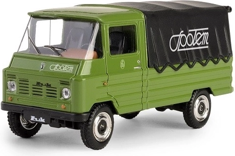 Detailný zberateľský model legendárneho úžitkového vozidla Żuk z obdobia Poľskej ľudovej republiky v mierke 1:43. Ponúka precízne spracovanie, chrómované kolesá, gumové pneumatiky a autentický lak v zelenej farbe s čiernou plachtou a logom „Społem“. Skvelá voľba pre zberateľov aj ako štýlový darček.