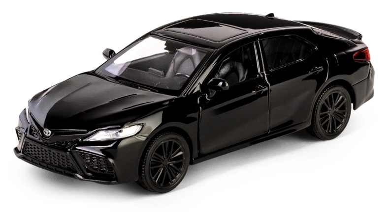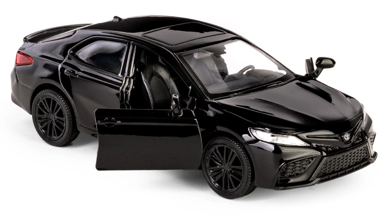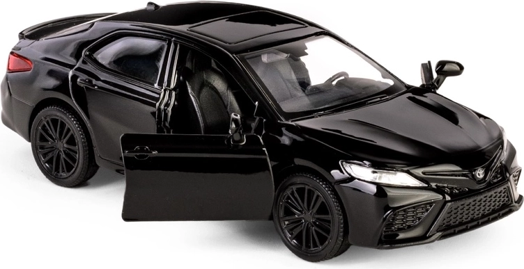 Užite si realistický zážitok s kovovým modelom TOYOTA Camry 2022 v elegantnej čiernej farbe. Vďaka kvalitnému spracovaniu a precíznym detailom interiéru aj exteriéru je tento model skvelou voľbou pre fanúšikov automobilov a zberateľov. Pull-back pohon zabezpečí svižnú jazdu vpred po natiahnutí, zatiaľ čo otváracie dvere odhalia prepracovaný interiér.