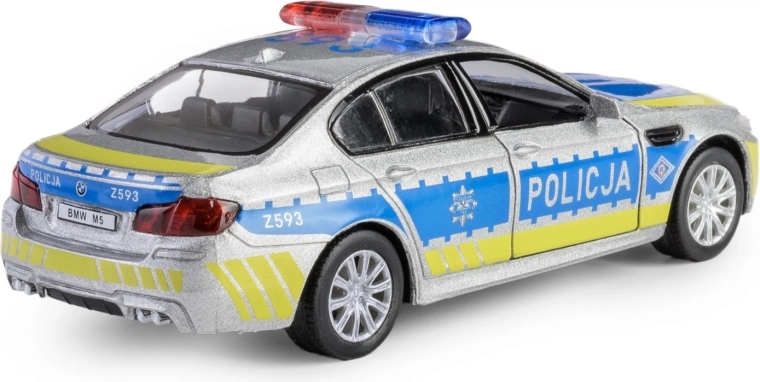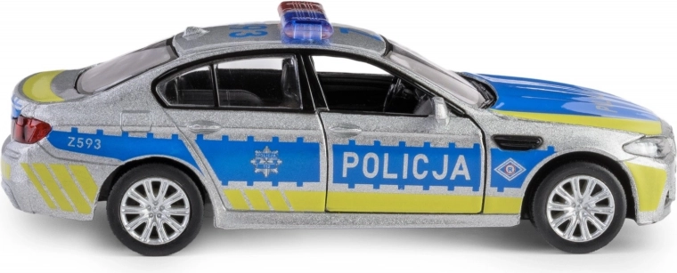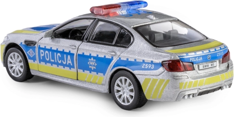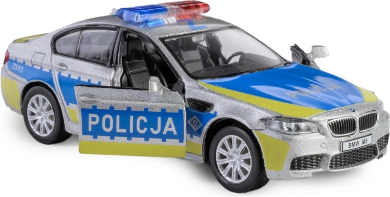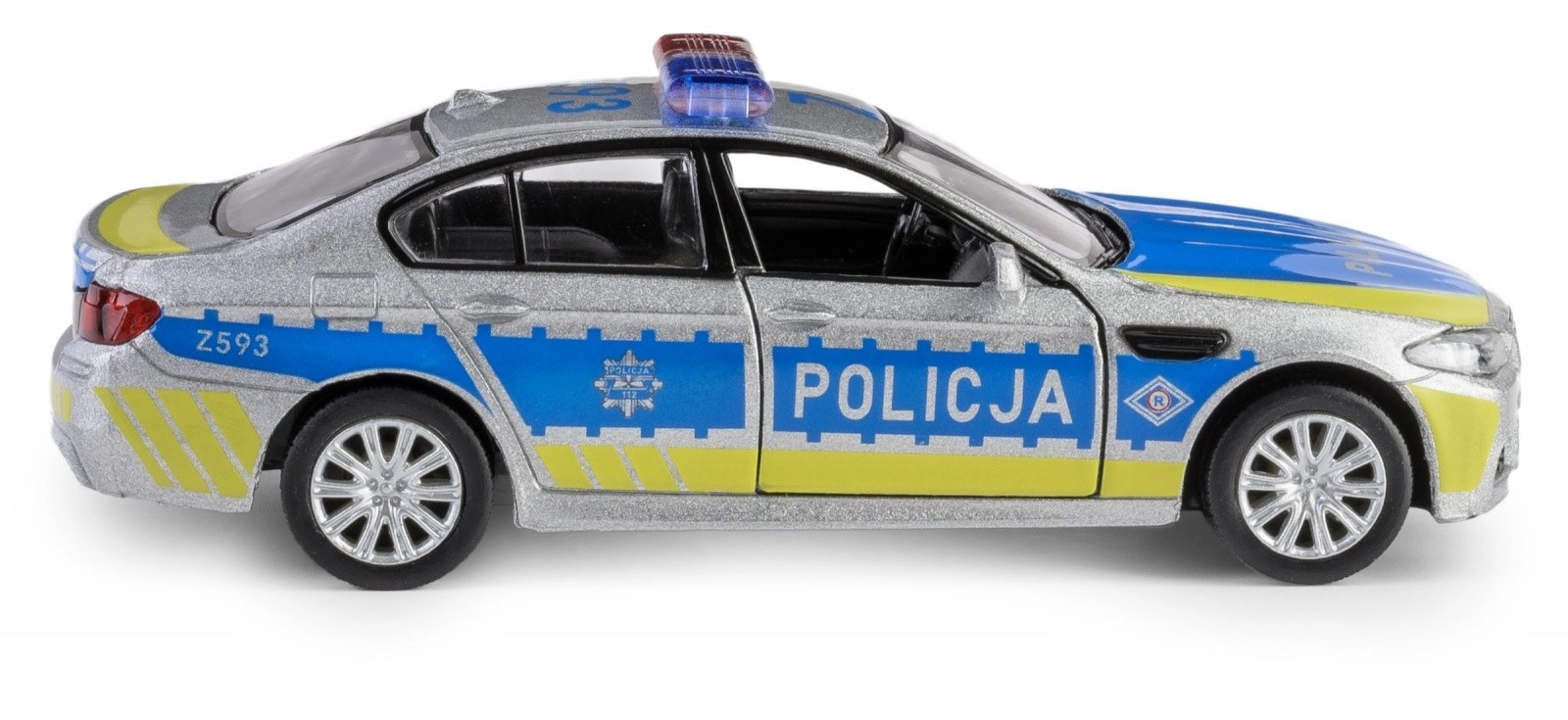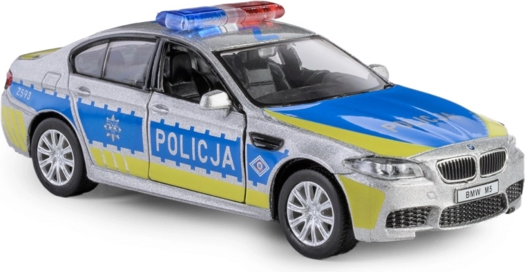 Kovový model policajného vozidla BMW M5 v mierke 1:32 od značky Daffi poteší deti aj zberateľov. Ponúka realistické spracovanie, otváracie dvere a pohon pull-back pre svižnú jazdu vpred. Vďaka oficiálnej licencii, kvalitným materiálom a splneniu európskych noriem bezpečnosti hračiek je ideálnou voľbou na hranie aj vystavenie.