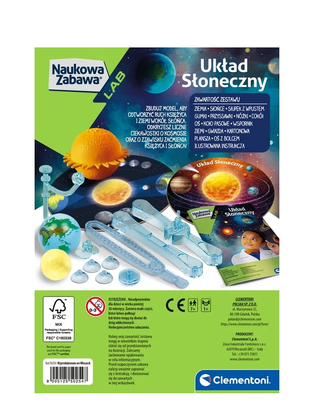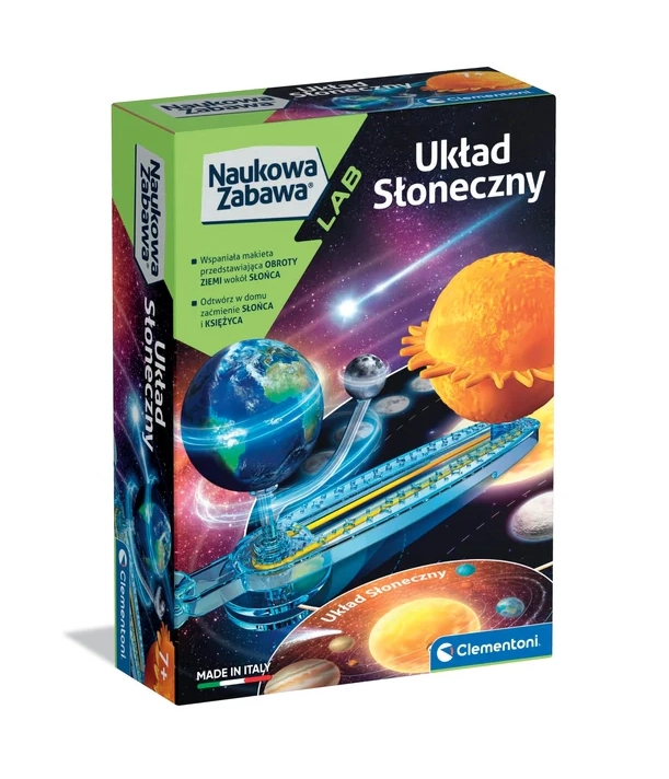 Interaktívna sada Clementoni pomáha deťom pochopiť fungovanie slnečnej sústavy. Vďaka ručnej simulácii obehu Zeme a Mesiaca deti ľahko porozumejú javom ako zatmenie Slnka a zatmenie Mesiaca. Kvalitné spracovanie vyrobené v Taliansku a zrozumiteľný návod zaisťujú zábavné učenie, rozvoj jemnej motoriky a priestorového vnímania.