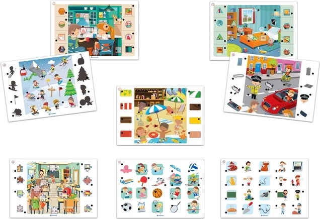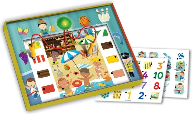 Súčasťou balenia je 6 obojstranných herných dosiek s 12 úlohami, elektronický modul s dvoma konektormi a praktický stojan na dosky. Hra je navrhnutá na samostatnú aj spoločnú aktivitu s rodičmi a vďaka bohatej ilustrácii udrží pozornosť detí po dlhý čas.