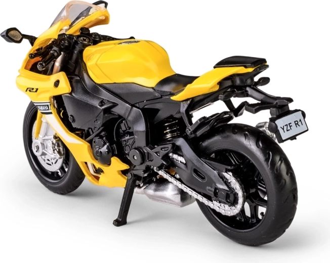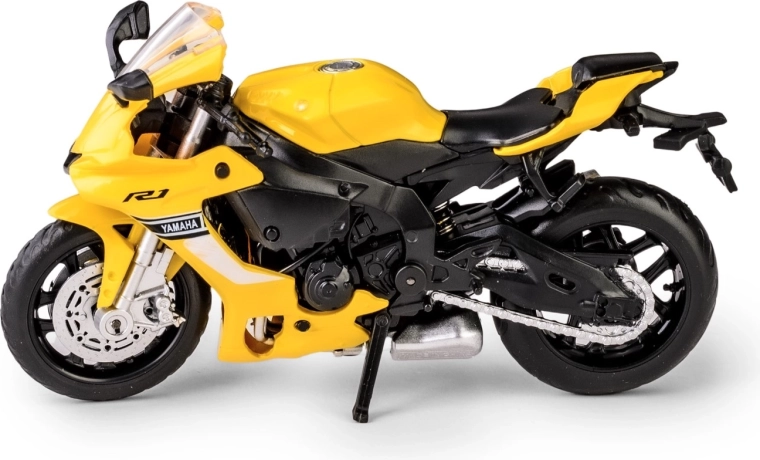 Detailný zberateľský model motocykla Yamaha YZF‑R1 v mierke 1:18 poteší deti aj dospelých. Kovové telo s plastovými doplnkami zaisťuje odolnosť, gumové pneumatiky podčiarkujú realistický vzhľad a funkčné detaily ako otáčavé kolesá, pohyblivé riadidlá a výklopný bočný stojan robia z modelu skvelý kúsok do vitríny aj na hranie.