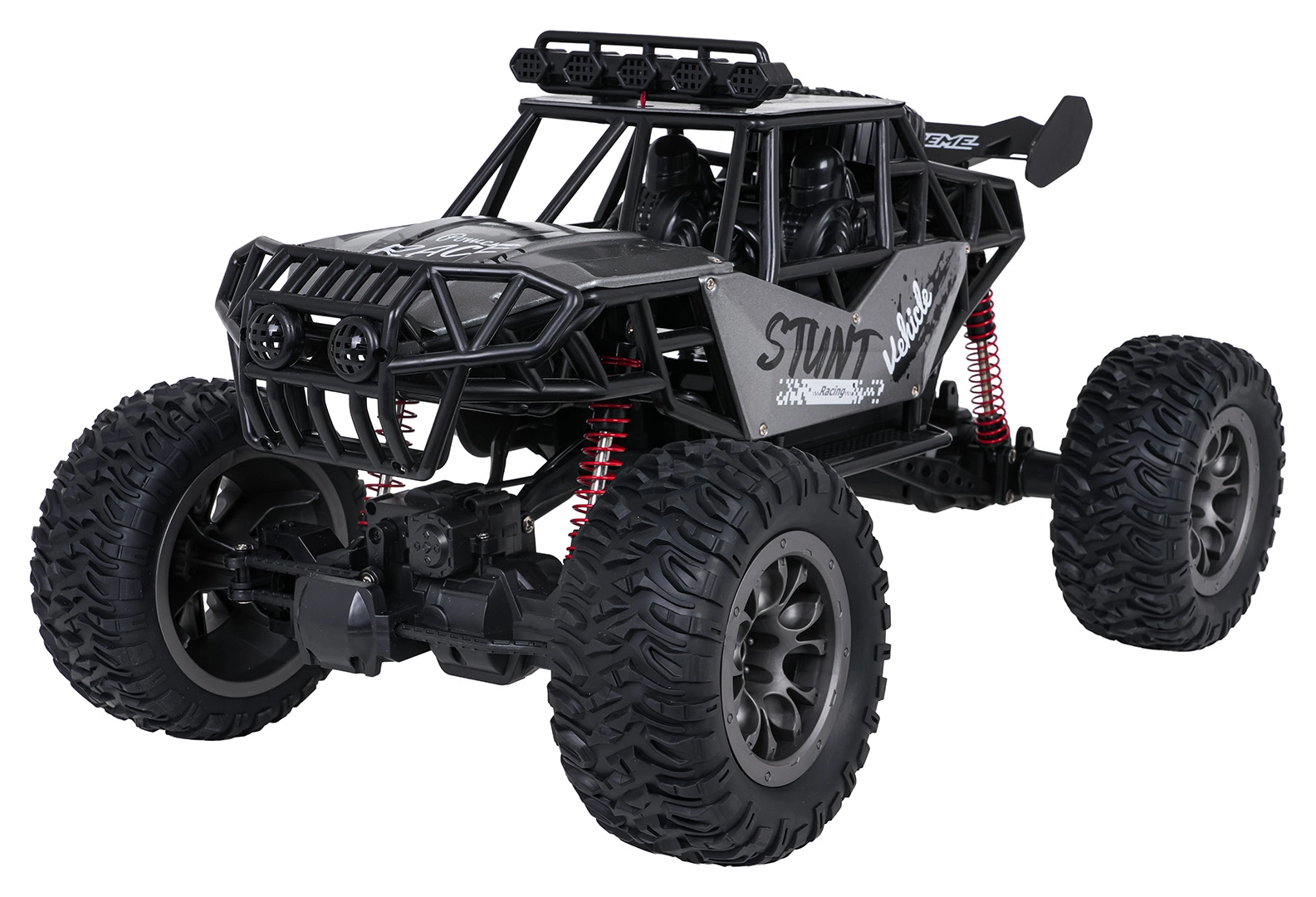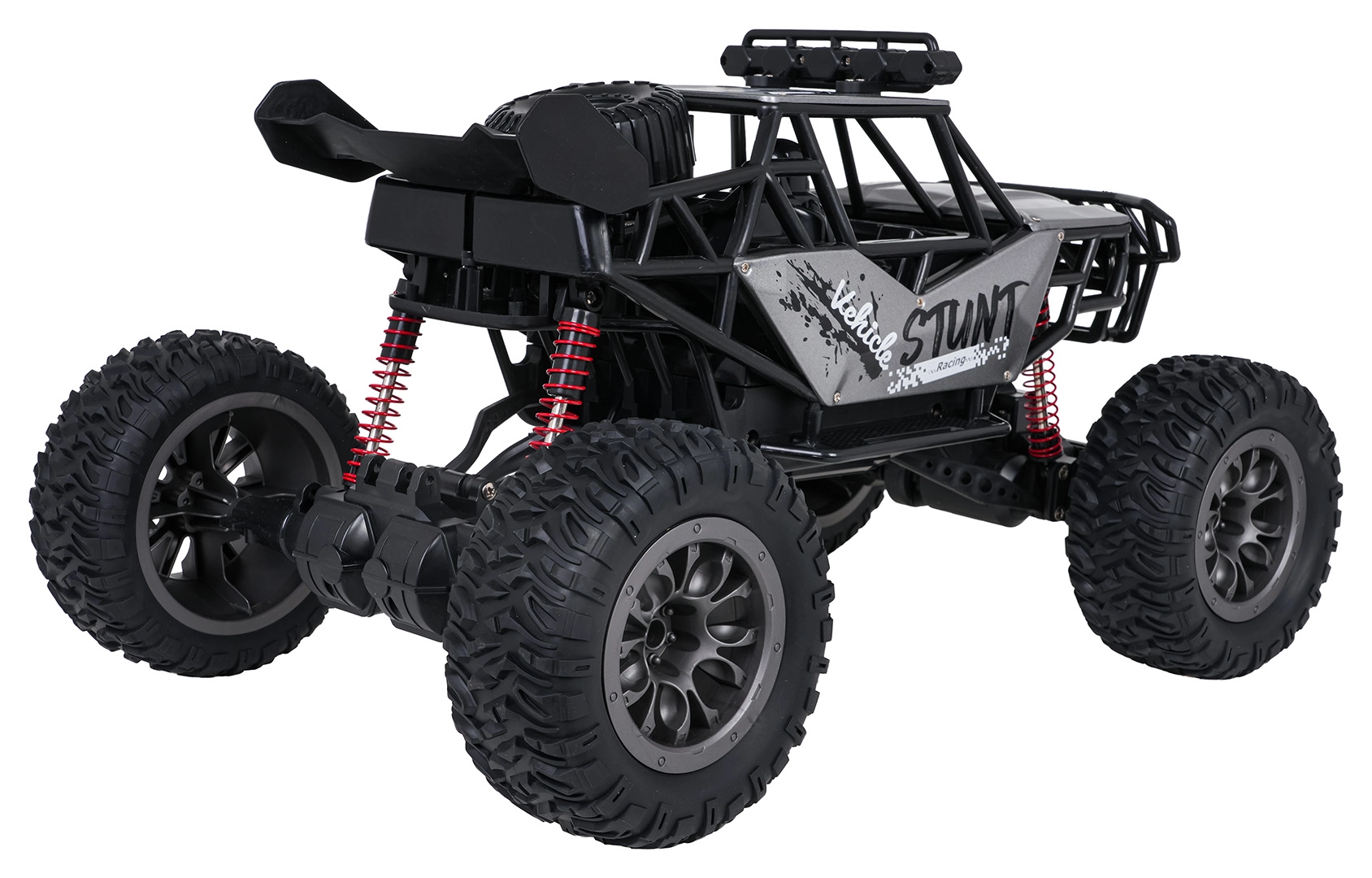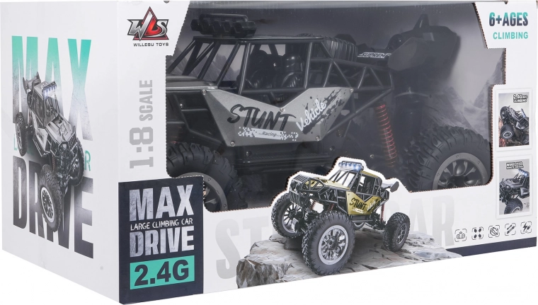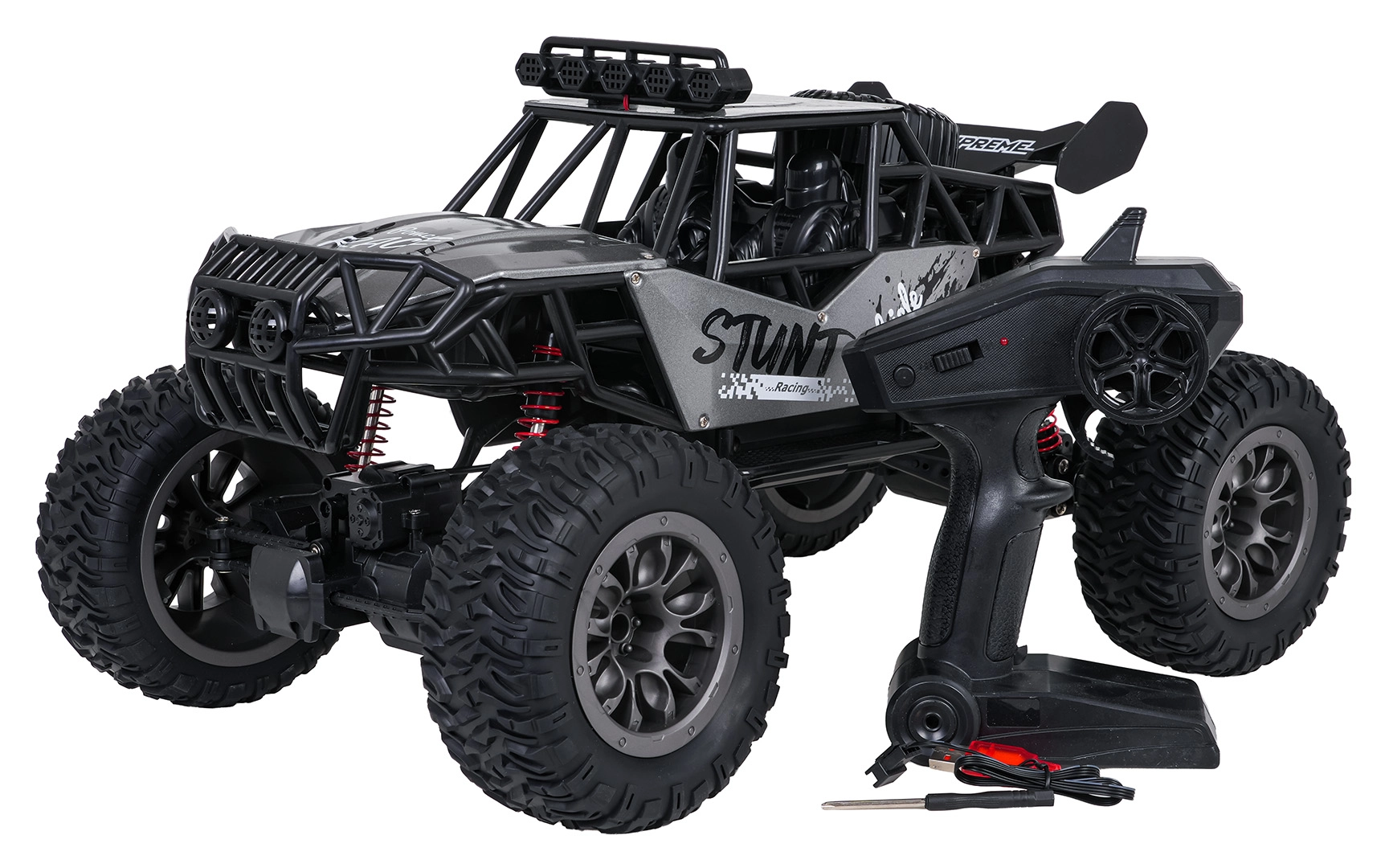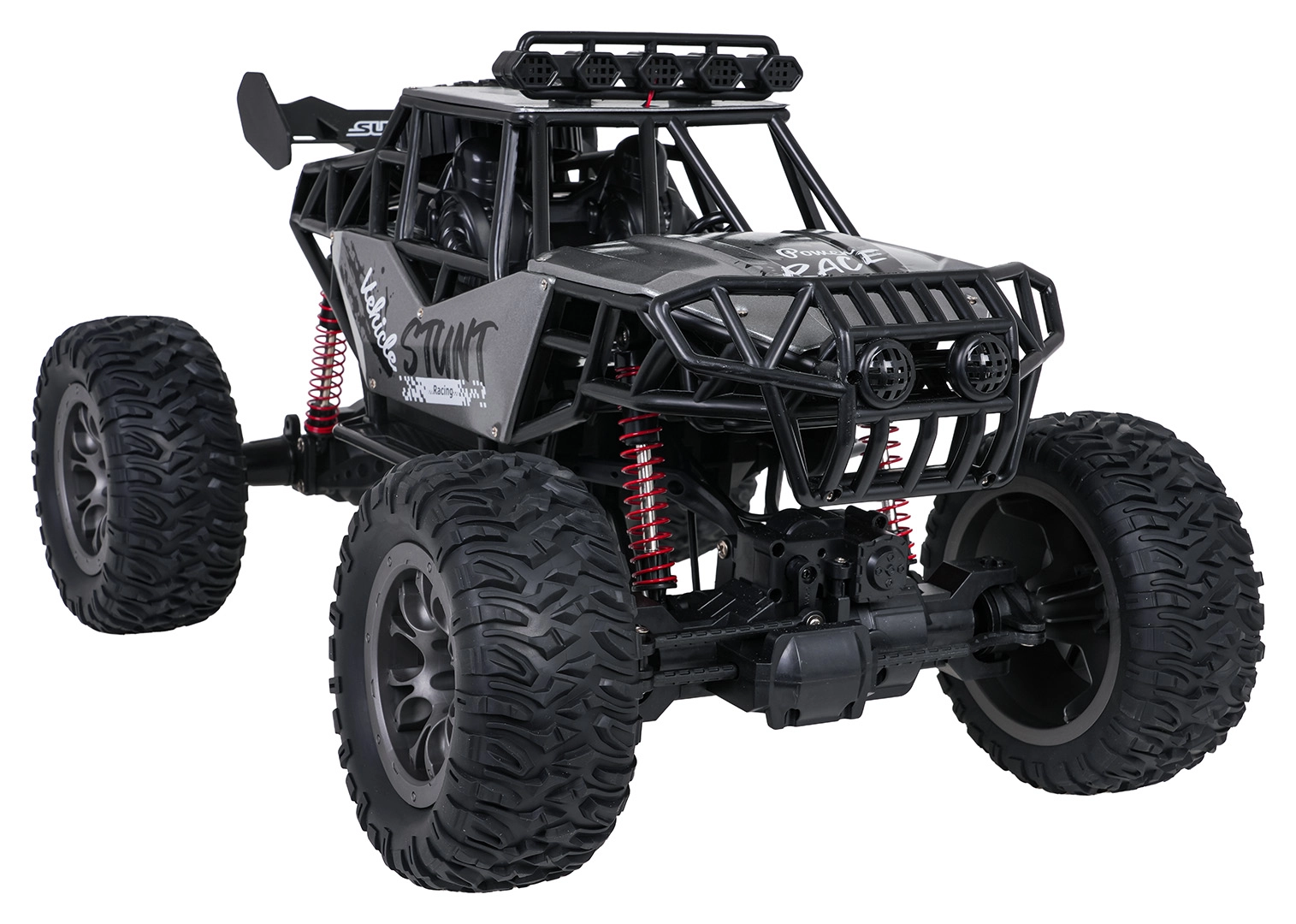 Vďaka pohonu všetkých kolies 4x4, vysokej svetlej výške a nezávislému pružinovému zaveseniu sa model ľahko šplhá po prekážkach a zvláda kaskadérske kúsky. Predné svetlá a LED panel na streche zlepšujú viditeľnosť a dodávajú atraktívny vzhľad. Praktické napájanie z akumulátora 7,4 V (v balení) šetrí batérie, ovládač vyžaduje 4× AA (nie sú súčasťou).