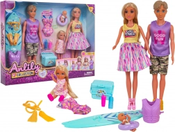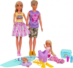 Užite si letné dobrodružstvá s týmto rodinným plážovým setom – mamička, otecko, dcéra aj bábätko a množstvo doplnkov na surfovanie a kúpanie. Súčasťou sú okrem iného surfovacia doska, záchranná vesta, plutvy, kruh a chladiaca taška na nápoje. Bábiky majú pohyblivé končatiny a ľahko sa prezliekajú, takže je set ideálny na kreatívne hranie rolí, rozvoj fantázie a dlhé hodiny zábavy.