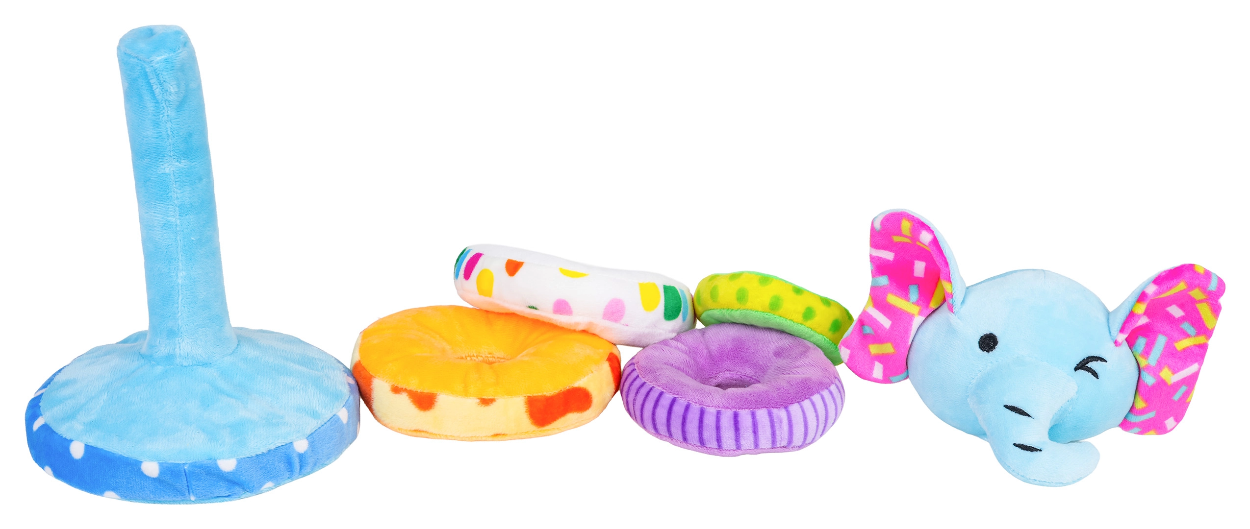 - Obsah balenia: mäkká základňa s tŕňom, 4 plyšové krúžky, odnímateľná hlava slona s pískatkom