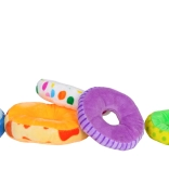 Vďaka mäkkému textilnému prevedeniu je hračka vhodná na každodenné hranie doma aj na cestách. Deti sa učia rozpoznávať veľkosti, precvičujú úchop a objavujú zvuky – všetko v bezpečnom a hravom balení.