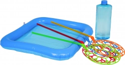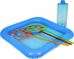 - 4× krúžok na bubliny, fľaštička s roztokom, nafukovací bazénik