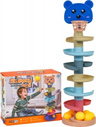 Táto farebná guľôčková dráha s hlavičkou medvedíka a horným košíkom nadchne malých staviteľov aj zvedavé rúčky. Diely jednoducho zacvaknete, postavíte vežu až zo 6 poschodí a sledujete, ako loptičky svištia po špirálach dolu do základne. Čím vyššiu vežu postavíte, tým väčšia je výzva trafiť sa do košíka – skvelá hra na rozvoj trpezlivosti a sústredenia.