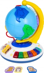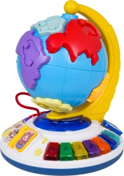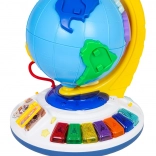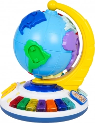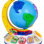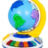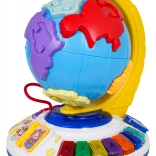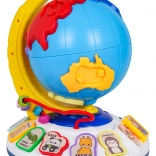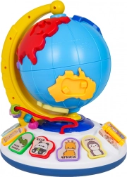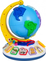 Objavte svet hravou formou s interaktívnym detským glóbusom pre deti od 18 mesiacov. Farebná edukatívna hračka so zvukovými a svetelnými efektmi, otáčaním o 360° a zvýraznenými kontinentmi rozvíja jemnú motoriku, predstavivosť a prvé znalosti geografie. Po vložení zvieracej pripínky sa ozve názov kontinentu, zvieratka a jeho zvuk. Súčasťou je svietiace piano klávesy, preklápacia knižôčka s melódiami a korálkový labyrint.
