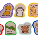 Súčasťou je 7 kontinentov a 7 pripináčikov so zvieratkami. Po vložení pripináčika sa ozve názov kontinentu, zvieraťa a jeho typický zvuk – učenie, ktoré baví.