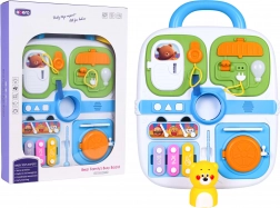 Kufrík je vyrobený z bezpečných, odolných materiálov v živých farbách a vďaka integrovanej rukoväti ho deti ľahko prenesú. Súčasťou je aj mini xylofón (cimbalíky) s paličkou, ktorý rozvíja rytmus a sluchové vnímanie. Skvelé riešenie na domáce hranie aj na cesty.