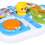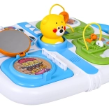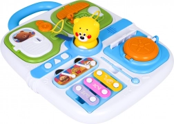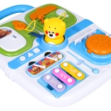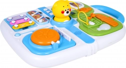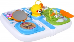 Mini cimbalíky s paličkou a pískajúci macko v strede zaujmú deti a rozvíjajú sluch aj rytmus. Integrované madlo uľahčuje prenášanie.