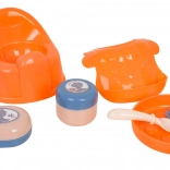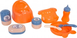 - bábika, cestovná postieľka, kočík, jedálenská stolička, nosítko, nočník, tanierik, lyžička, vidlička, fľaša, dóza na krém, dóza na púder, mydelnička, podbradník