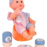 - pije z fľaštičky a môže „cikať“ do nočníka