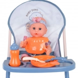 Pohodlné kŕmenie bábiky vďaka vysokej stoličke s odnímateľným podnosom a sadou príborov, tanierikom, podbradníkom a fľaštičkou. Ideálna na realistické scenáre starostlivosti.