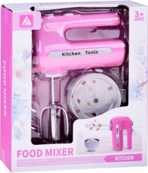 Set zahŕňa mixér, 2 miešacie nadstavce (metla a hnetací hák) a misku pre pohodlné „šľahanie“ a „hnietenie“. Hra podporuje jemnú motoriku, kreativitu a rolové hranie, vďaka čomu je skvelým darčekom pre deti, ktoré rady napodobňujú dospelých a objavujú svet varenia.