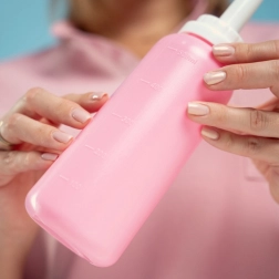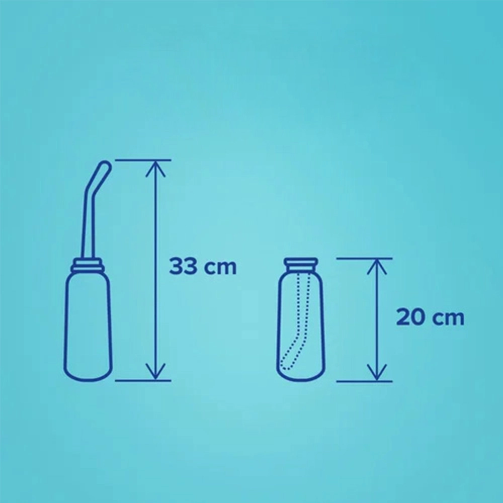 Vďaka veľkej kapacite 500 ml vykonáte dôkladné opláchnutie na jedno naplnenie. Odnímateľný nadstavec možno zložiť na kompaktné uloženie, hygienický uzáver chráni trysku a priložené puzdro uľahčuje transport. Pravidelným oplachovaním čistou vodou podporíte prirodzenú intímnu hygienu a znížite riziko infekcií a ďalšieho podráždenia.