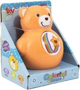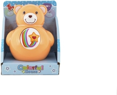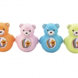 Medvedík sa vďaka svojmu zaoblenému podstavcu prirodzene kýve, čo upútava pozornosť dieťaťa a podporuje jeho interaktivitu.