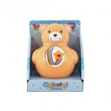 Stlačte tlačidlo na brušku medvedíka a sledujte, ako hračka vydáva pískací zvuk, ktorý baví deti a povzbudzuje ich k ďalšiemu skúmaniu.