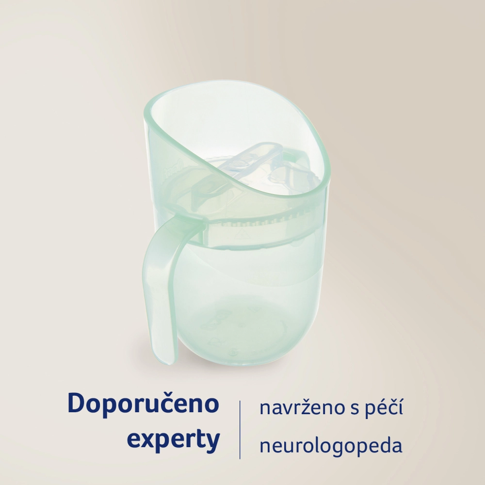 Ľahká konštrukcia, dve široké ušká a kompaktná veľkosť z neho robia perfektnú voľbu pre začiatočníkov. Keď si dieťa osvojí správnu techniku, vložku jednoducho vyberiete a z pohárika sa stane otvorený pohár s objemom 150 ml – jeden produkt tak skutočne rastie s dieťaťom.