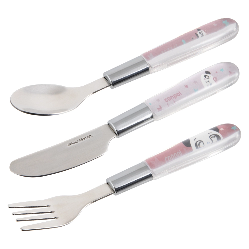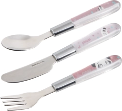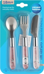 Súprava kovového detského príboru je navrhnutá pre deti, ktoré sa učia jesť samé. Ergonomické tvary a ľahká konštrukcia podporujú správne návyky a pohodlné držanie v detskej ruke. Bezpečné, zaoblené hrany chránia ďasná a zabezpečujú pokojné stolovanie.