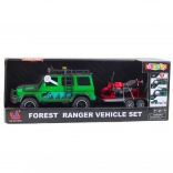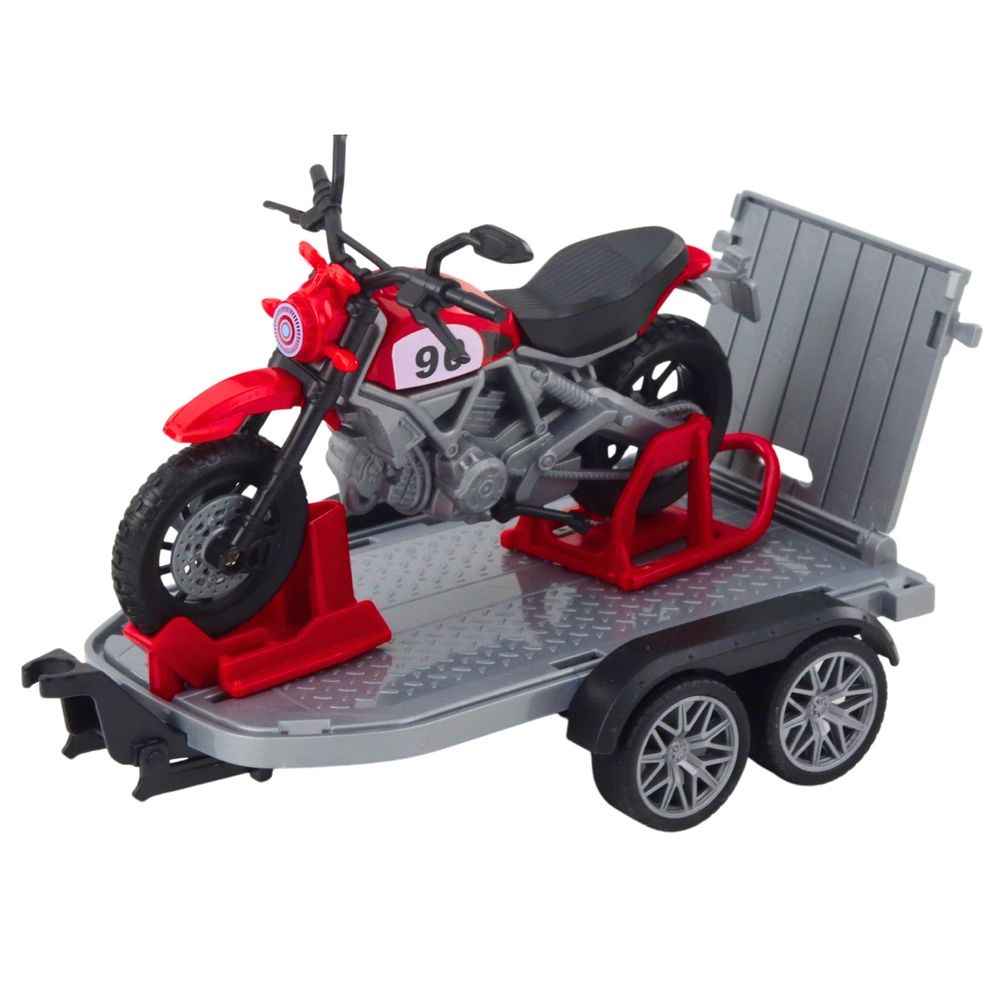 Súčasťou je odpojiteľný dvojnápravový príves s nájazdovou rampou a detailne spracovaná motorka. Každý diel možno používať samostatne aj spolu – auto, príves aj motorka podporujú rozvoj predstavivosti, koordinácie a samostatnej hry.