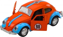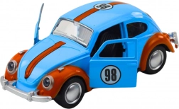 Klasická silueta chrobáka s pretekárskymi pruhmi a číslom 98 pôsobí ako mini replika pretekárskeho vozidla – ideálna na hranie aj vystavenie.
