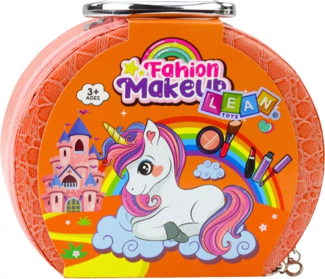 Elegantná oranžová kozmetická taštička s povrchovou úpravou imitujúcou kožu ukrýva bohatú výbavu na bezpečné detské líčenie a zábavnú manikúru. Vďaka prehľadným priehradkám a malému zrkadielku môžu deti pohodlne objavovať svet farieb a trblietok.