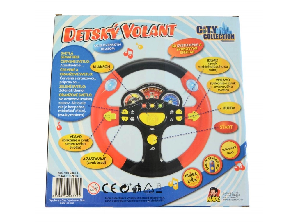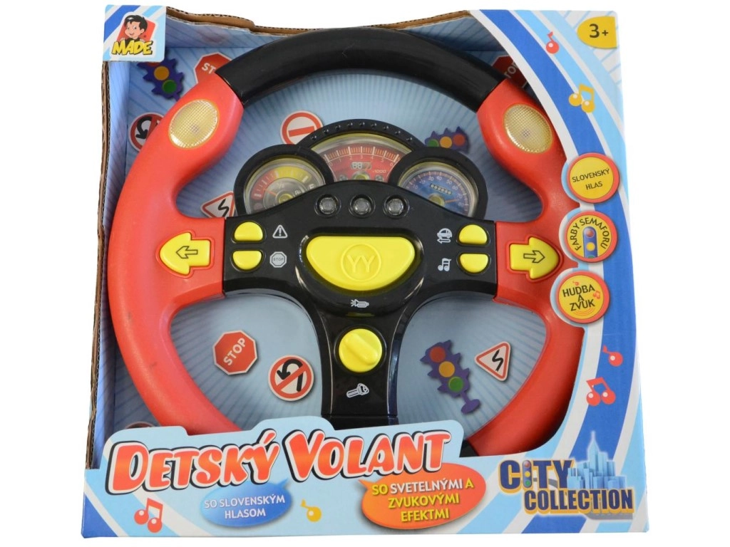 Interaktívny zvukový volant MaDe v červenej farbe prináša deťom realistický zážitok z vedenia vozidla. Vďaka slovenskému hlasu a svetelným a zvukovým efektom sa deti hravou formou učia pravidlá premávky, najmä farby semafora a rozlíšenie ľavej a pravej strany. Volant ponúka aj zábavné melódie, ktoré spríjemnia každú „jazdu“.