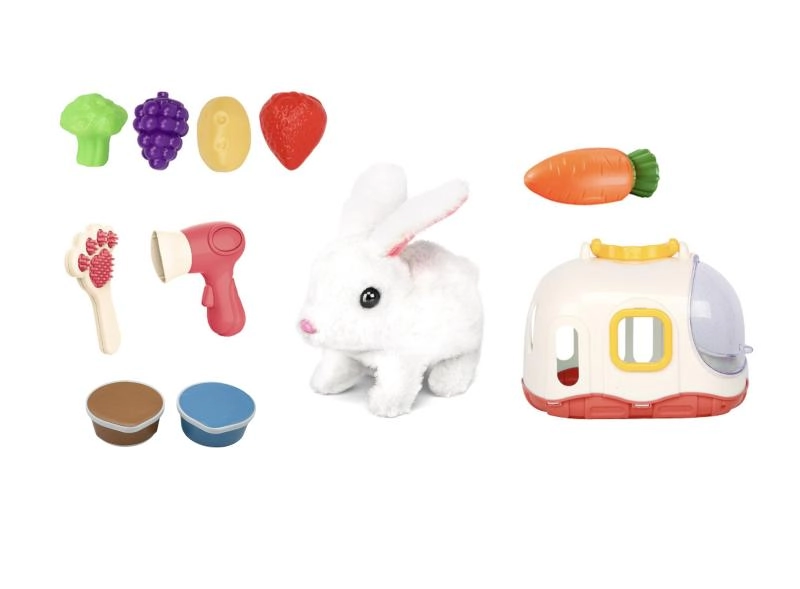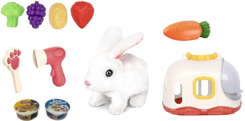 V balení nájdete všetko, čo deti potrebujú na starostlivosť a hru: hrebeň a fén na úpravu srsti a plastové dobroty (ovocie a zelenina) na hru na kŕmenie. Hračka podporuje fantáziu, jemnú motoriku a zodpovedný prístup k starostlivosti o zvieratko.